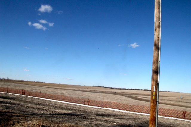 Boggy cat tail area behind gas station.