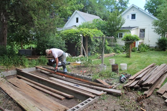 Dad has been salvaging buildings ranging from old horse barns to public buildings like churches since his youth so it took him little more than an afternoon to dismantle the old shed and stack it into the back of a pickup. I felt ambivalent about its demise but was thrilled to find that the foundation under the old shed seemed in great repair and perhaps could be used on a replacement shed.