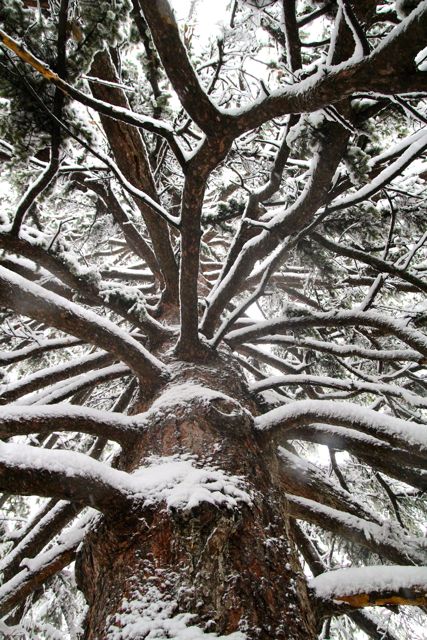 Lincoln recieved 13.5 inches of heavy, wet snow that stuck to every surface it touched.  This was hard on some trees but for me and my sister, it was an invitation to wander. There is something exhilarating about being out and about on foot in weather that keeps cars parked.  Snow covered the now surreal landscape.  The weight of the snow transformed the ordinary into forms that even Dr. Seuss would admire.