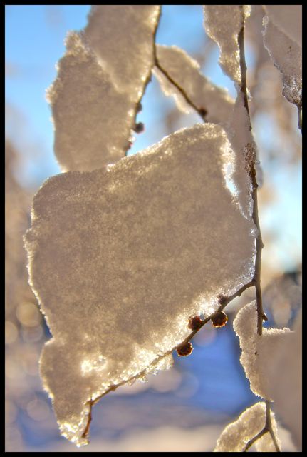 Morning sunshine beckoned and I was dazzled by the ice crystals and shapes of snow that still clung to the branches.  I see many more walks in the days to come and life is good.